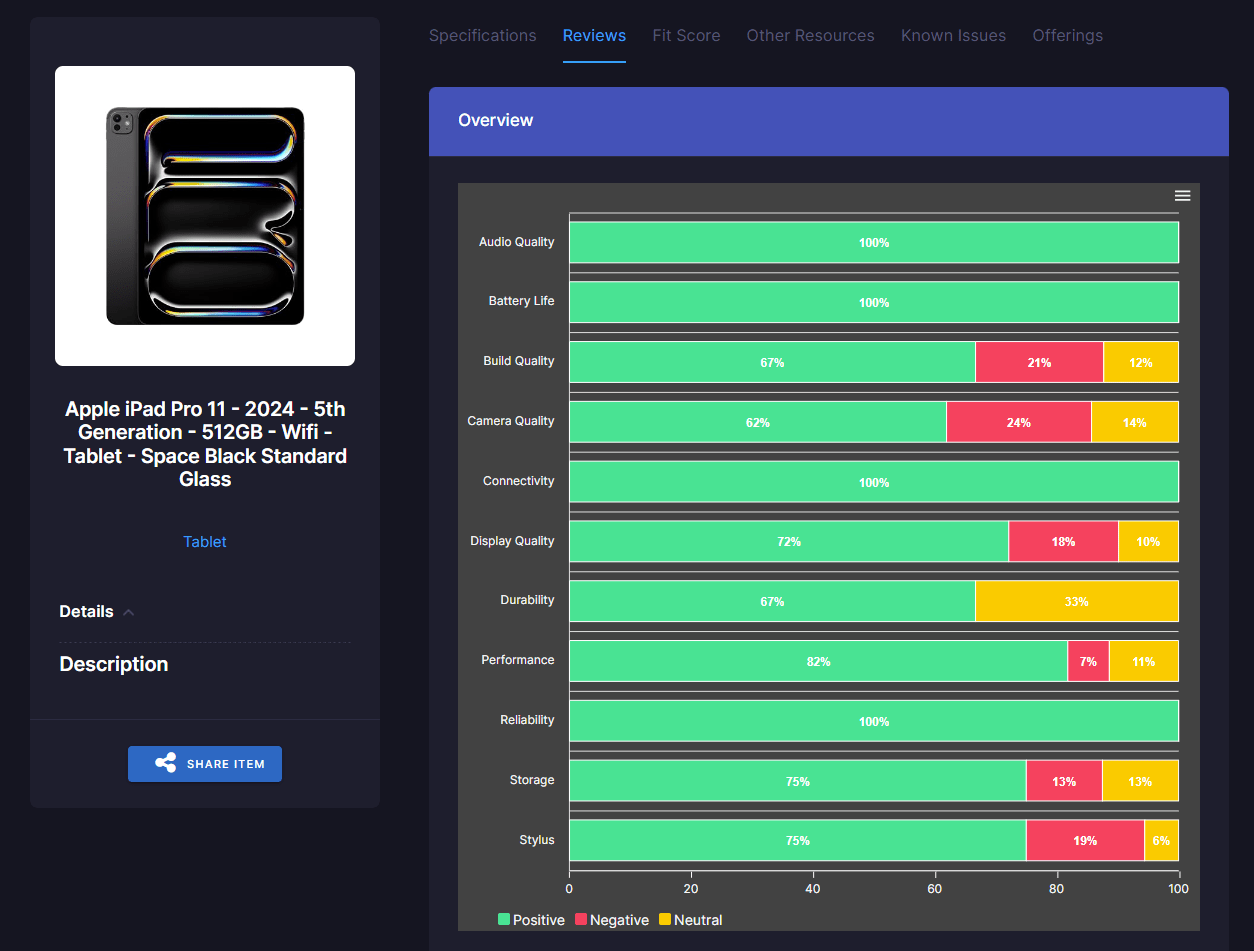 - User Feedback Reviews: Identify key areas of improvements or focus given customer feedback about a product or solution.